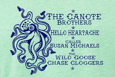 This year’s theme is “Under the Sea.” Start thinking about your costumes for Saturday night’s costume parade. For some inspiration, here’s some artwork created by our multi-talented fiddler Marie for this year’s T-shirt.